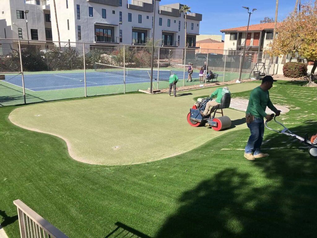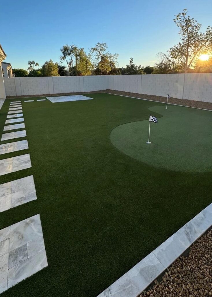 Artificial turf gives you a reliable roll and faster greens with almost no maintenance. Real grass needs constant care. With turf, you get consistent play all year without mud, dry patches, or weeds.
