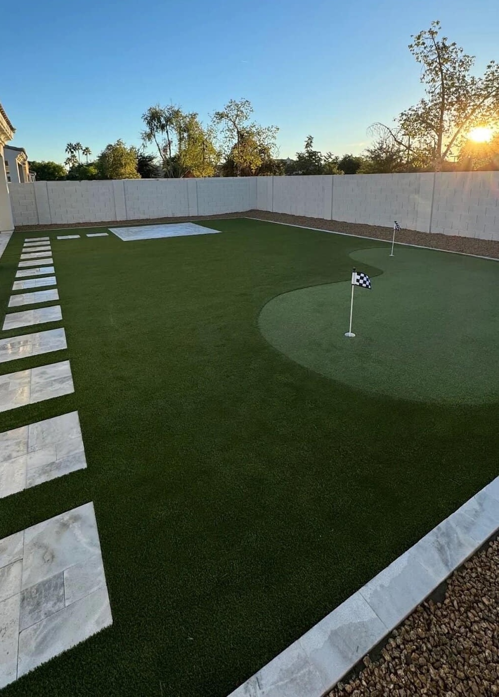 Most backyard greens take between 2 and 5 days to install. Bigger builds with extras like bunkers may take longer. We’ll let you know the timeline before we begin.